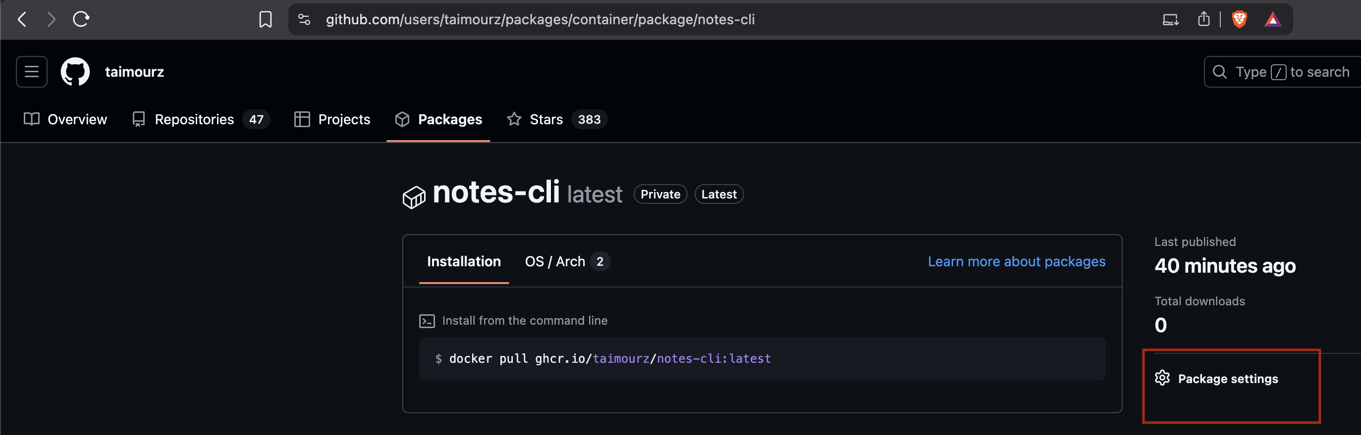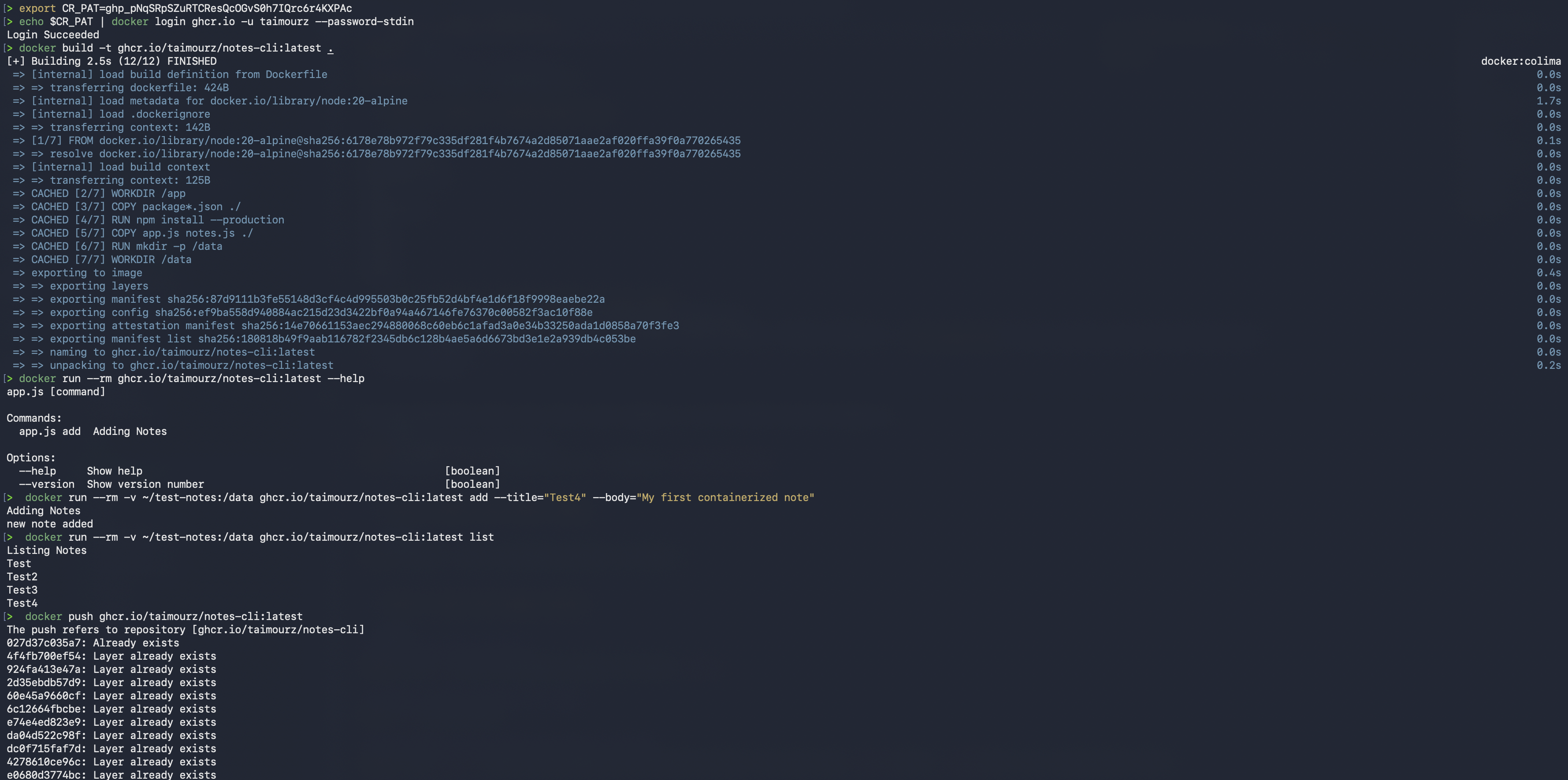 docker build -t ghcr.io/taimourz/notes-cli:latest .Finally test Your Image Locally and Push to GitHub Container Registry